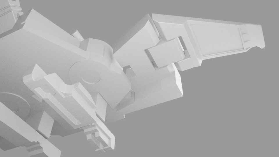 For my second portfolio piece, I decided to graduate to a full transformer, working off an unused concept of Ironhide from the TV show, Transformers: Prime. There is a included concept of him in pickup truck mode, but I decided not to attempt to make him transformable. The mechanics of the transition are very loosely defined and don't seem possible. In the show its most likely that visual tricks are performed to achieve the effect. Instead I used the truck concept for design ideas for parts not shown in the robot mode concept. With this model, I hoped to emulate the joints shown in the concept exactly and use some of what I learned observing my Transformers figures.